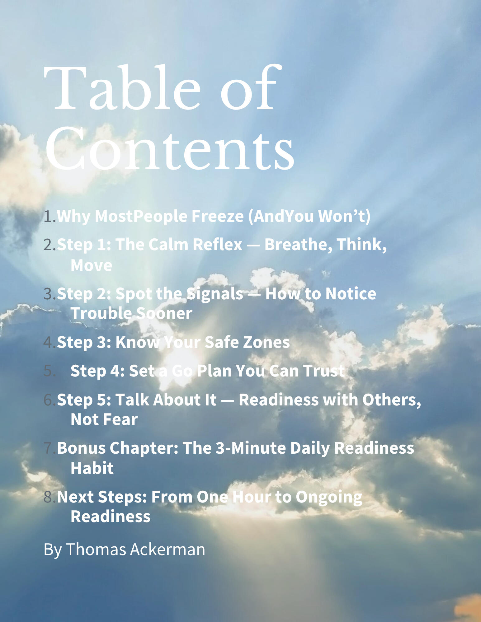 By the end of this book, you will have a clear, beginner-friendly readiness framework you can complete in about an hour.You will walk away with more confidence, more calm, and practical steps you can use immediately — at home, in public, or anytime something does not feel right.